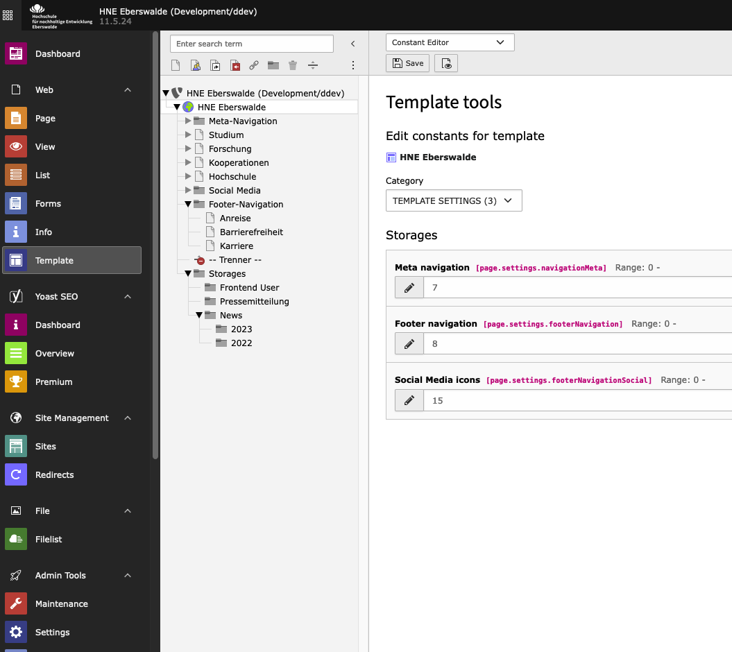Die Kategorie “Template Settings”